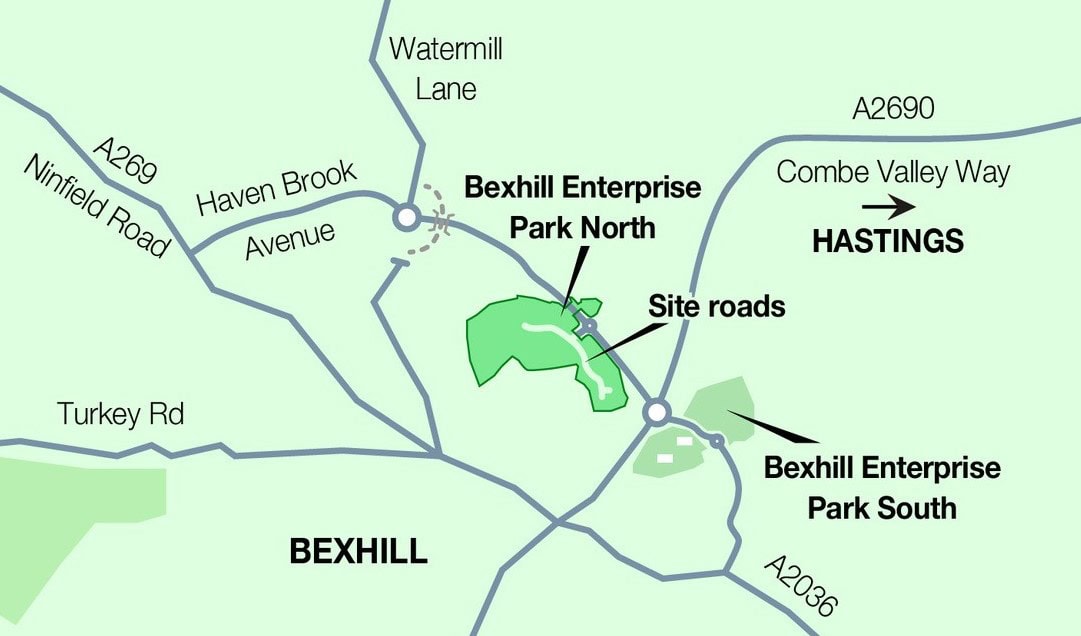 The Bexhill Enterprise Park is part of the urban extension of Bexhill being rolled out across 66 acres (27 ha) to the north of the town. This includes the creation of local roads and housing, with scope for up to 600,000 sq ft (55,742 sq m) of business premises and 2,000 new homes.