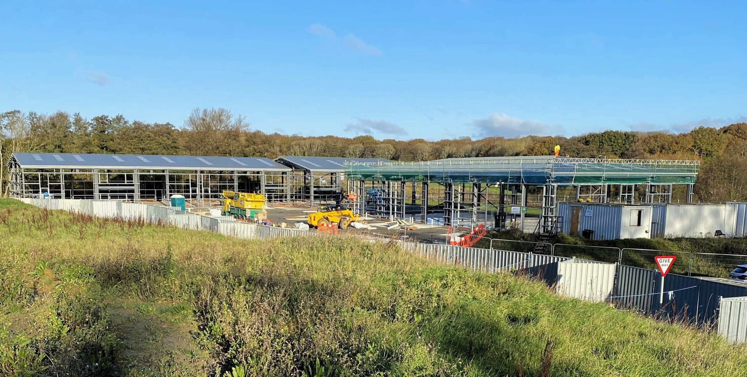 The first three of the light industrial properties being developed on the Bexhill Enterprise Park have reached an important construction milestone – with the steel frames completed and roofs installed. Seven of the forthcoming units are already under offer and are set to be occupied in 2026.